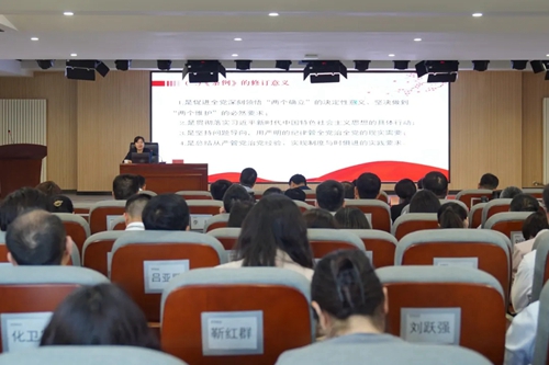 市紀委監(jiān)委駐城發(fā)集團紀檢監(jiān)察組副組長姬小靜,以《做遵規(guī)守紀的明白人》為題,分別從《條例》的歷史沿革、修訂意義、新變化和特點等方面,逐章逐條深度解讀新修訂的《中國共產(chǎn)黨紀律處分條例》。深刻領(lǐng)悟全面從嚴治黨的實踐要求,切實學(xué)出政治忠誠、學(xué)出清正廉潔、學(xué)出擔(dān)當作為。