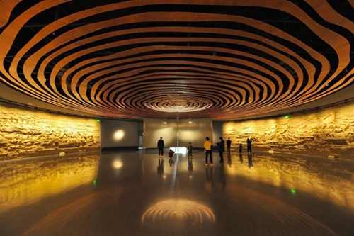 第一展廳充分利用展廳上下層挑空的特點,展示早商王都布局規(guī)劃,復原沙盤,數(shù)字投影和大型立體復原沙盤、視頻解讀相結(jié)合,生動呈現(xiàn)鄭州商都的整體布局和功能分區(qū)。第二展廳以場景復原為主,除了通俗的場景復原,現(xiàn)場還運用了三維立體掃描和3D打印的新技術(shù)展示鄭州商都的重要遺跡。