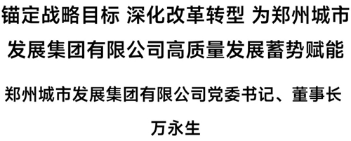 下面,為您推出鄭州城市發(fā)展集團有限公司黨委書記、董事長萬永生署名文章《錨定戰(zhàn)略目標 深化改革轉型 為鄭州城市發(fā)展集團有限公司高質(zhì)量發(fā)展蓄勢賦能》——