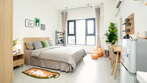 李博租住的公寓內(nèi),配備了智能門鎖、獨(dú)立衛(wèi)浴、床、衣柜、書桌、洗衣機(jī)、空調(diào)、冰箱、抽油煙機(jī)、晾衣架等,有暖氣無燃?xì)?。李博說,自己每天大部分時(shí)間都在學(xué)校,騎車到公寓單程約20分鐘,“公寓的環(huán)境和配套都挺好的,滿足自住完全沒問題。”