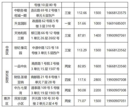 本批次配租房源共計(jì)32套,其中金水區(qū)12套、管城區(qū)7套、二七區(qū)8套、中原區(qū)1套、鄭東新區(qū)3套、惠濟(jì)區(qū)1套。水電費(fèi)均為民用水電標(biāo)準(zhǔn),物業(yè)費(fèi)為各小區(qū)物業(yè)收費(fèi)標(biāo)準(zhǔn),房源精裝修交付,周邊配套設(shè)施齊全,配備家具家電,拎包入住,后續(xù)房源將根據(jù)裝修進(jìn)度情況陸續(xù)配租。