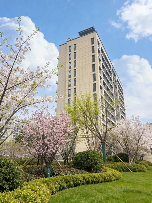 新樓向藍(lán)天而立,繁花開在歸家路上。