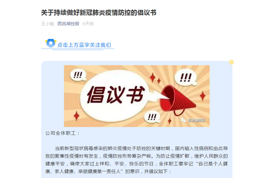 利用疫情防控專題會議、部門例會、通知、倡議書等形式加強疫情防控宣傳力度,及時、準確地宣傳防治信息,普及防治知識,引導職工科學參與疫情防控。