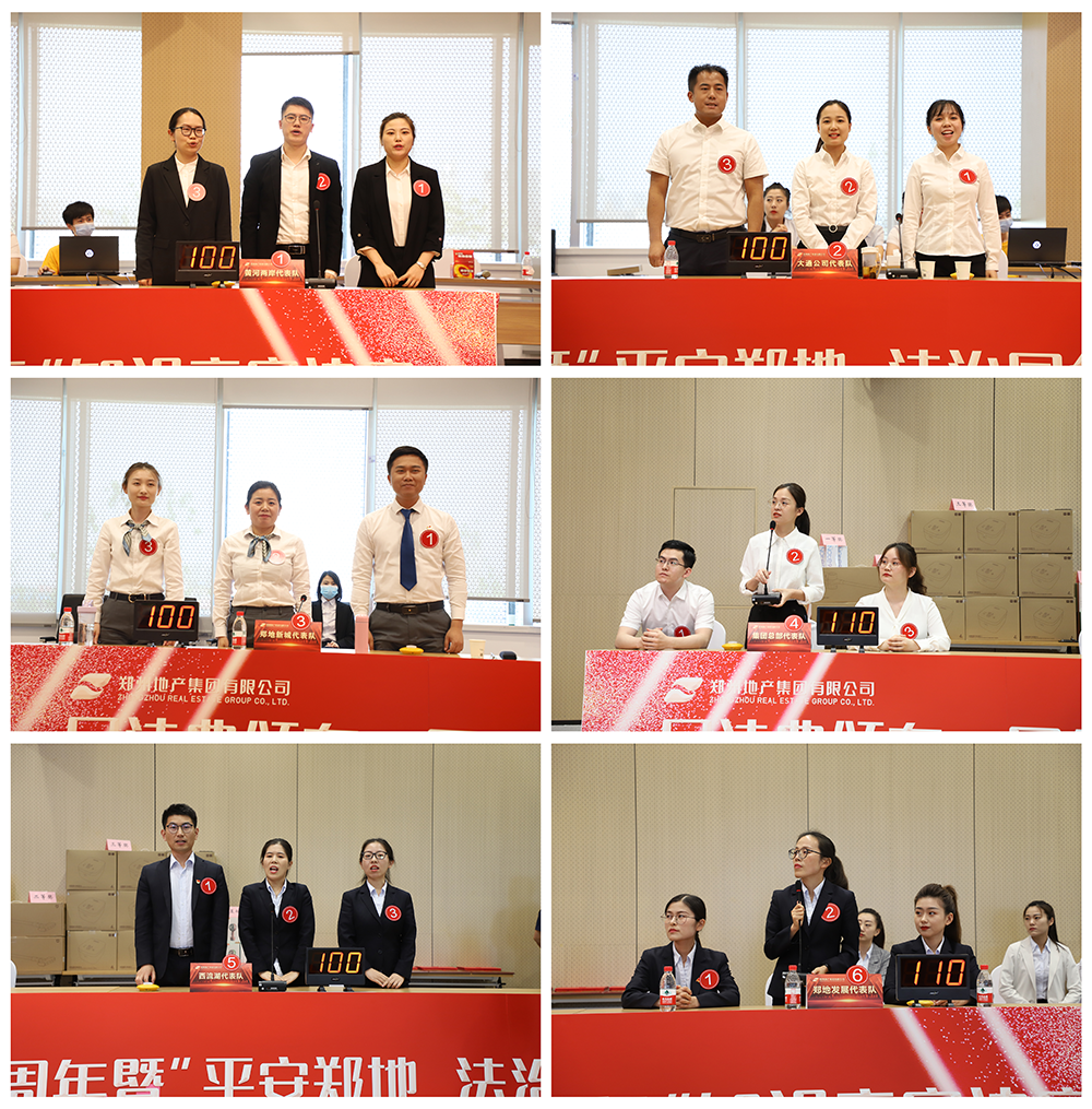 地產(chǎn)集團(tuán)總部及10家子公司廣泛參與,本次競(jìng)賽共有12支隊(duì)伍報(bào)名參賽。經(jīng)過緊張激烈的預(yù)賽比拼,最終有6支隊(duì)伍突出重圍,進(jìn)入決賽。決賽賽程分為必答題、爭(zhēng)分奪秒題、搶答題、挑兵點(diǎn)將題、風(fēng)險(xiǎn)題五個(gè)環(huán)節(jié),圍繞民法典、平安建設(shè)、精神文明建設(shè)等內(nèi)容開展競(jìng)賽答題活動(dòng)。答題環(huán)節(jié),各代表隊(duì)展現(xiàn)出了精湛的理論素養(yǎng)、扎實(shí)的法律功底、靈活的應(yīng)變能力和精誠合作的團(tuán)隊(duì)精神,精彩的表現(xiàn)贏得現(xiàn)場(chǎng)觀眾的陣陣掌聲。經(jīng)過幾個(gè)環(huán)節(jié)激烈的角逐,最終地產(chǎn)集團(tuán)西流湖公司代表隊(duì)摘得桂冠。