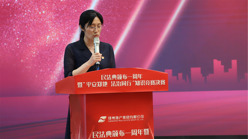 為深入貫徹落實(shí)習(xí)近平總書記關(guān)于民法典學(xué)習(xí)宣傳的重要講話精神及市國資委2021年度普法依法治理工作要點(diǎn)相關(guān)要求,引導(dǎo)全體職工深入學(xué)習(xí)民法典及相關(guān)法律知識(shí),提升職工干部學(xué)法懂法守法用法的能力,5月28日,在民法典頒布一周年之際,鄭州地產(chǎn)集團(tuán)主辦、西流湖公司和鄭地發(fā)展公司承辦的“平安鄭地 法治同行”知識(shí)競(jìng)賽總決賽在金岱科創(chuàng)城商務(wù)服務(wù)中心舉辦,在市屬國企系統(tǒng)掀起學(xué)法普法的熱潮。鄭州市國資委黨委委員、副主任孟慶平、信訪處處長(zhǎng)夏建新、法規(guī)處副處長(zhǎng)張珂應(yīng)邀出席本次活動(dòng)。