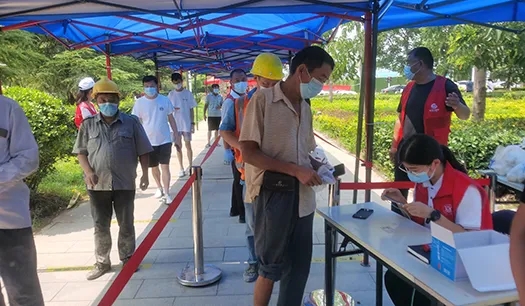 由于龍湖社區(qū)內(nèi)工地?cái)?shù)量多,人員流動(dòng)性大,檢測(cè)人群普遍年齡偏大,給檢測(cè)工作著實(shí)帶來一定難度。尤其是有一位工友,左腿受傷骨折,打著石膏拄著拐杖來做檢測(cè),他沒有拿身份證且隨行人員都不會(huì)熟練操作手機(jī)掃碼,但在志愿者的引導(dǎo)下,從帶領(lǐng)他走愛心通道、到協(xié)助錄入信息、幫助他們?nèi)私仄亮舸嬉约白罱K完成檢測(cè),志愿者認(rèn)真的工作態(tài)度得到了工友和社區(qū)工作者的高度贊揚(yáng)。檢測(cè)期間,志愿小隊(duì)統(tǒng)一按照社區(qū)的調(diào)度安排,各司其職,專人專崗,一切行動(dòng)聽指揮,做到了各環(huán)節(jié)專人負(fù)責(zé)和快速反饋,整體檢測(cè)工作快速有序的進(jìn)行,僅在15日一天,社區(qū)就完成了4000余人次的檢測(cè)。來自龍湖社區(qū)的居民表示,第四次核酸檢測(cè)相較于前幾次效率明顯提高且秩序良好,從最初的半個(gè)小時(shí)以上到現(xiàn)在的幾分鐘,這不僅是效率質(zhì)變,更是廣大一線工作人員的付出心血,大家都非常感謝他們。